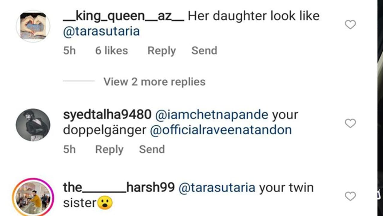 एक यूजर ने लिखा है, "रवीना टंडन की बेटी बहुत ही प्यारी है।" एक यूजर ने तारा सुतारिया को टैग करते हुए लिखा है, "आपकी ट्विन सिस्टर।" एक यूजर ने लिखा है, "वह बेहद खूबसूरत है।"