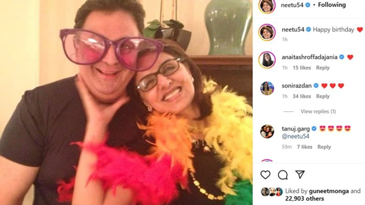 नीतू कपूर ने ऋषि के साथ अपनी अनसीन कपल फोटो साझा करते हुए लिखा है, "हैप्पी बर्थडे।" इसके साथ उन्होंने दिल की इमोजी शेयर की।