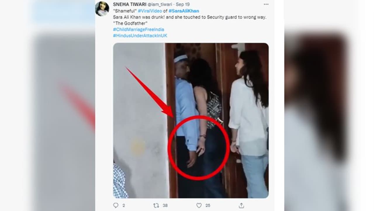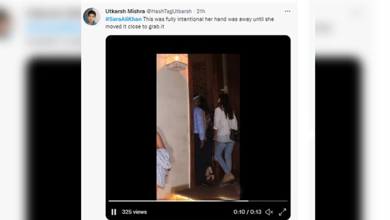 एक अन्य यूजर ने लिखा है, "सारा अली खान का शर्मनाक वायरल वीडियो। सारा नशे में थीं और उसने सिक्योरिटी गार्ड को गलत तरीके से छुआ।"