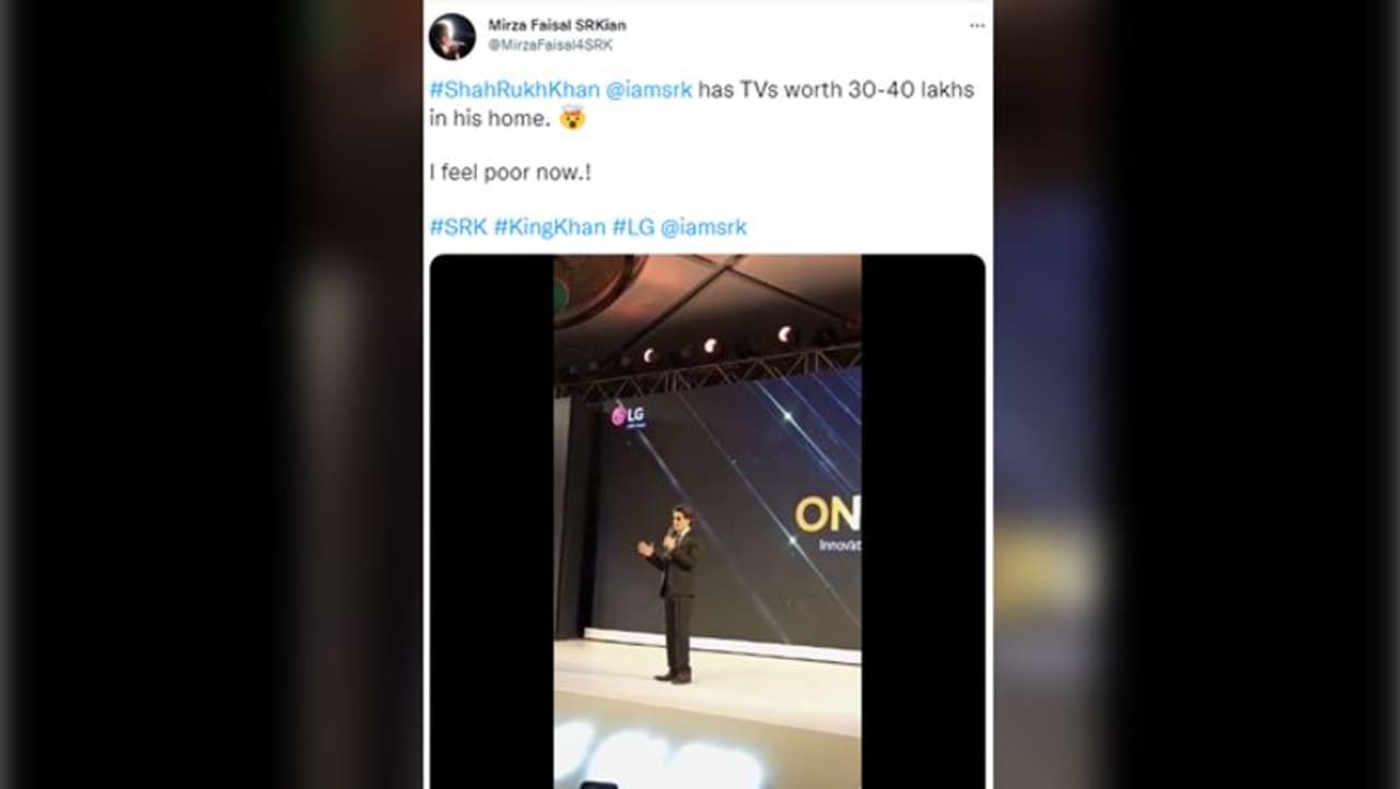 शाहरुख़ के एक फैन ने इवेंट का एक वीडियो शेयर करते लिखा है, "शाहरुख़ खान के घर में 30-40 लाख रुपए के टीवी हैं। मैं गरीबी महसूस कर रहा हूं।"