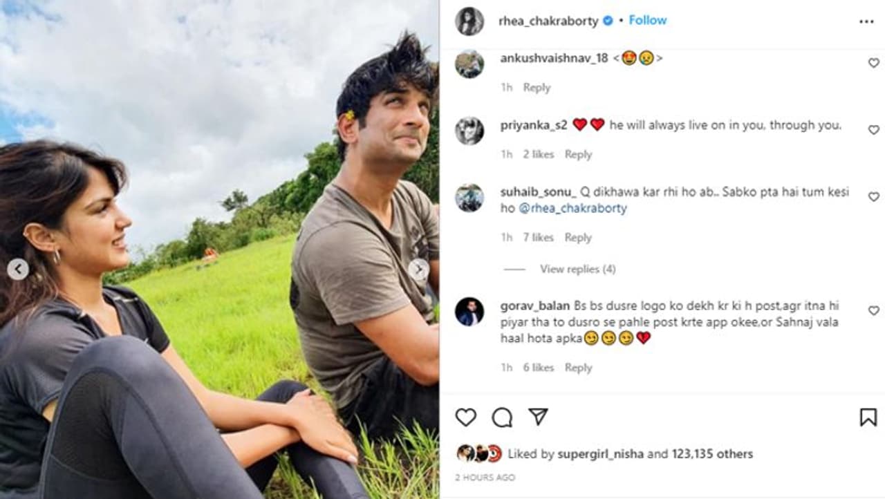 रिया के अकाउंट से शेयर हुईं ये तस्वीरें देखकर सुशांत सिंह राजपूत के फैन्स भी अपने आंसू नहीं रोक पा रहे हैं। वे कमेंट बॉक्स में आंखों में आंसुओं वाली इमोजी शेयर कर दुःख जता रहे हैं। एक यूजर ने लिखा है, "आपकी बहुत याद आती है सुष।" एक ने लिखा है, "Miss you Bhai." हालांकि, केई सोशल मीडिया यूजर्स उन्हें बुरी तरह ट्रोल भी कर रहे हैं। एक यूजर ने रिया को ट्रोल करते हुए लिखा है, "ATM जो था आपका।" एक यूजर ने लिखा है, "क्यों दिल दुखा रही हो?" एक यूजर ने लिखा है, "बहन पैसे खत्म हो गए क्या?" एक यूजर का कमेंट है, "इंसान की कद्र ज्यादा मरने के बाद ही होती है।" एक यूजर ने लिखा है, "क्यों दिखावा कर रही हो? सबको पता है तुम किसी हो?" एक यूजर ने पूछा है, "क्यों कोई और बकरा नहीं मिल रहा?" एक अन्य यूजर ने लिखा है, "बस कर नौटंकी कहीं की।"