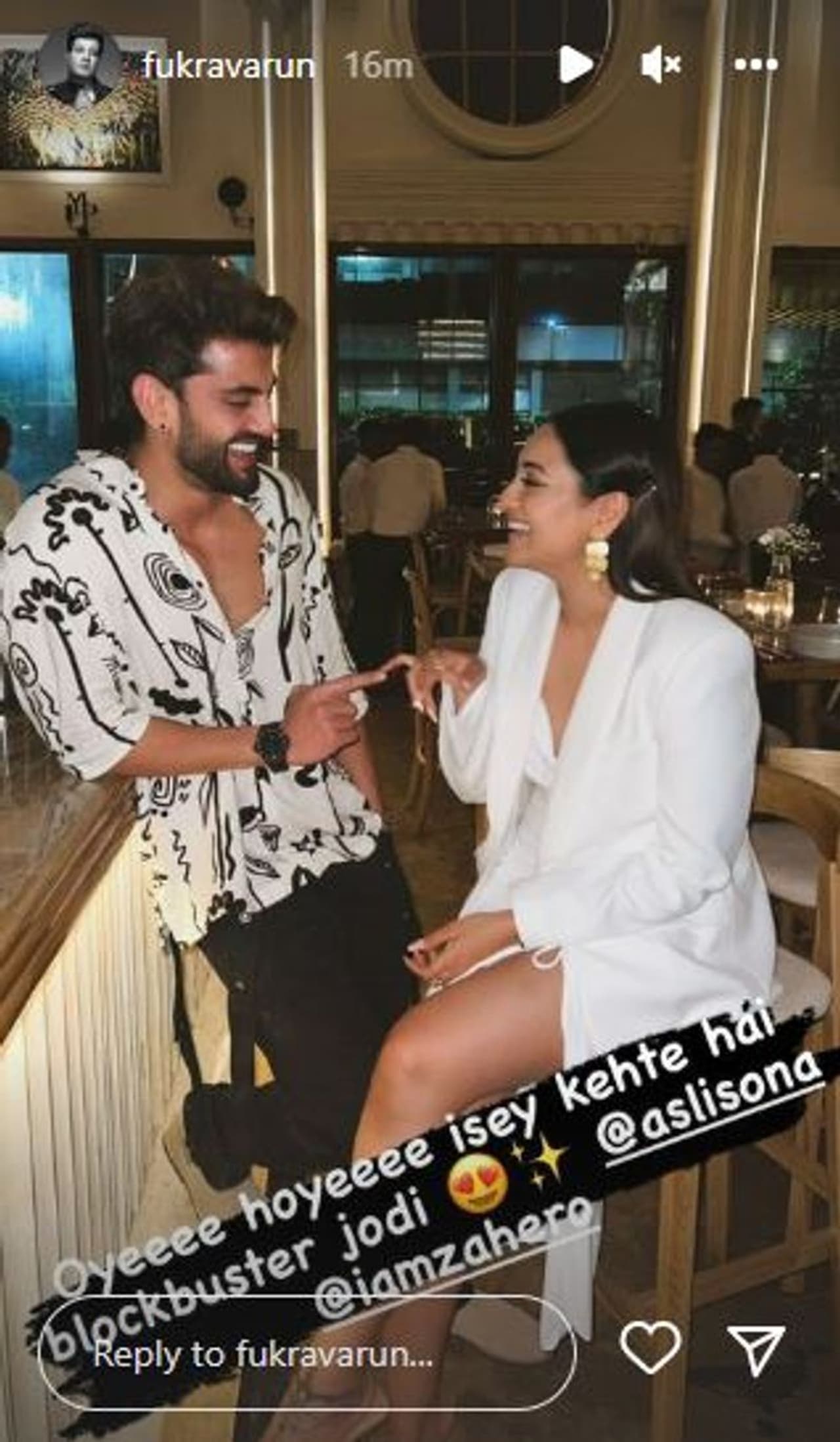 दरअसल, गुरुवार रात सोनाक्षी सिन्हा और जहीर इकबाल मुंबई स्थित एक रेस्टोरेंट में साथ डिनर करते हुए स्पॉट किए गए। दोनों की रेस्टोरेंट से बाहर निकलते हुए तस्वीरें और वीडियो वायरल हुए थे। इस मौके पर दोनों के साथ 'फुकरे' फेम एक्टर वरुण शर्मा भी नजर आए। रेस्टोरेंस से लौटने के बाद वरुण ने अपने सोशल मीडिया अकाउंट पर सोनाक्षी और जहीर की एक तस्वीर शेयर की। इसे शेयर करते हुए वरुण ने लिखा, 'ओए-होए, इसे कहते हैं ब्लॉकबस्टर जोड़ी...' बता दें कि हाल ही में सोनाक्षी के बर्थडे पर जहीर ने उनका एक क्यूट वीडियो अपने इंस्टाग्राम अकाउंट पर शेयर किया था।