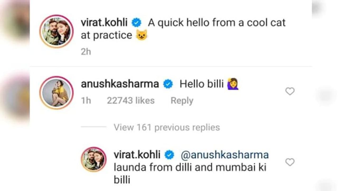 विराट की पत्नी अनुष्का शर्मा ने जब यह पोस्ट देखी तो उन्होंने भी बिल्ली को 'हैलो' कह दिया। मजेदार बात तब हुई जब अनुष्का के इस कमेंट पर विराट का रिप्लाई आया। विराट ने फनी और रोमांटिक अंदाज में अनुष्का को रिप्लाई देते हुए लिखा, 'लौंडा दिल्ली से है और बिल्ली मुंबई की है।'