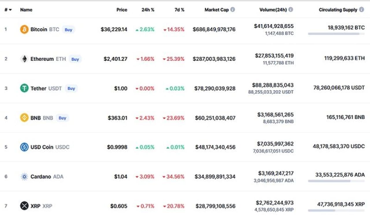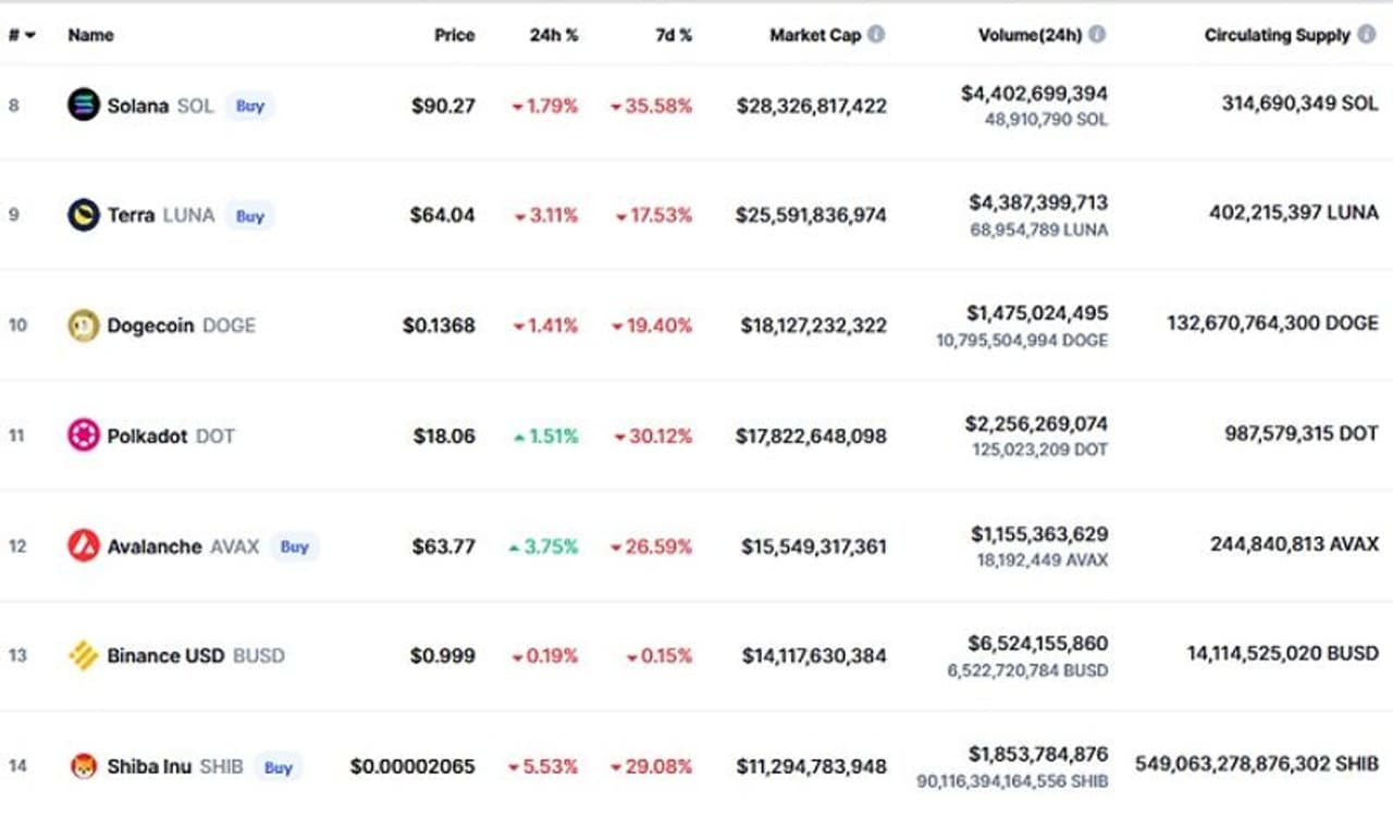 दूसरी ओर, कॉइनडेस्क के अनुसार, इथेरियम और दुनिया की दूसरी सबसे बड़ी क्रिप्टोकरेंसी, 4 फीसदी से ज्यादा गिरकर 2,390 डॉलर पर आ गया है। डॉगकोइन की कीमत लगभग 3 फीसदी गिरकर 0.13 डॉलर हो गई जबकि शीबा इनु 8 फीसदी से अधिक गिरकर 0.000021 डॉलर हो गई। अन्य क्रिप्टो जैसे कि एक्सआरपी, टेरा, स्टेलर, हिमस्खलन, कार्डानो, सोलाना, पॉलीगॉन भी पिछले 24 घंटों में कटौती के साथ कारोबार कर रहे थे। इस बीच, CoinGecko के अनुसार, ग्लोबल क्रिप्टोकरेंसी मार्केट कैप आज लगभग 2 फीसदी की गिरावट आ गई है, जिसके वजह से आंकड़ें 1.71 ट्रिलियन डॉलर हो गया है।