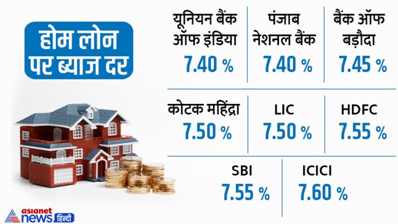 नई दिल्लीः एलआईसी (LIC) हाउसिंग फाइनांस लिमिटेड ने होम लोन की ब्याज दरों में बढ़ोतरी कर दी है। अब होम लोन पर 7.50% ब्याज लगेगा। 20 जून से लागू हो गई हैं। इससे पहले SBI, ICICI और HDFC सहित अन्य बैंक भी होम लोन की ब्याज दरों में बढ़ोतरी कर चुके हैं। लेकिन अभी भी यूनियन बैंक ऑफ इंडिया 7.40 प्रतिशत, पंजाब नेशनल बैंक 7.40 प्रतिशत, बैंक ऑफ बड़ौदा 7.45 प्रतिशत ब्याज दर पर होम लोन दे रही है। जानकारों का मानना है कि अगर आप होम लोन लेने जा रहे हैं, तो आपको बाजार के अलग-अलद बैंकों के भाव भी जान लेनी चाहिए। चलिए हम बताते हैं।