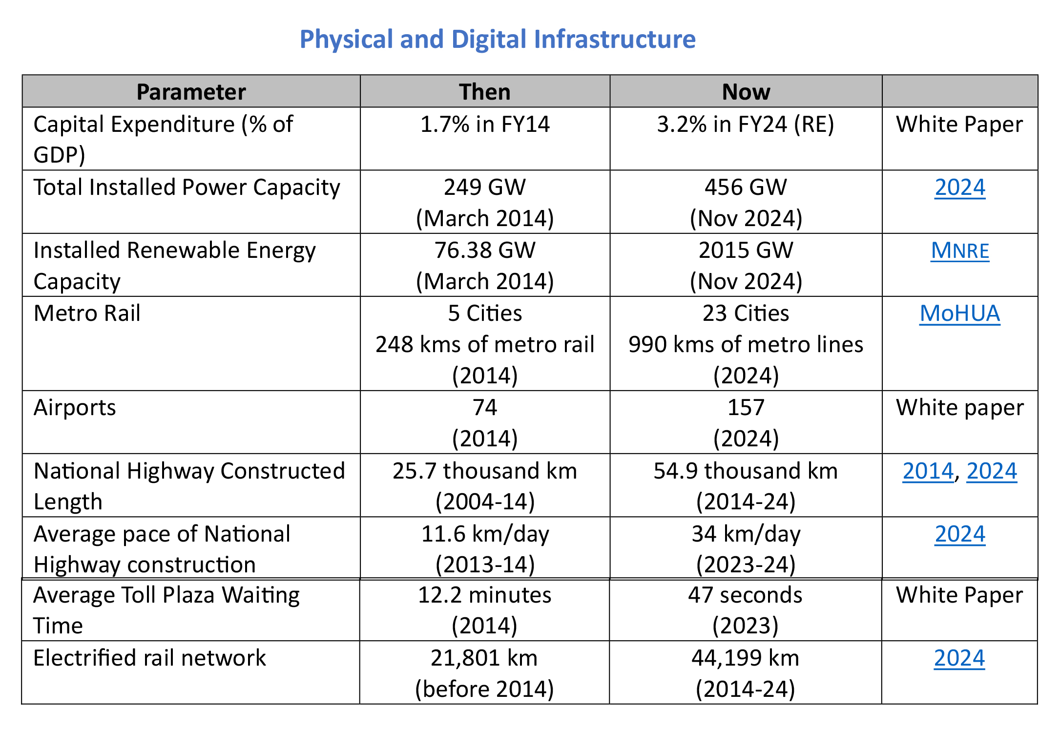 यूपीए के बाद एनडीए सरकार के १० सालों में भारत ने आर्थिक और ढांचागत विकास में लंबी छलांग लगाई है। जीडीपी, एफडीआई, स्टार्टअप्स से लेकर बिजली, मेट्रो और हाईवे तक, जानिए क्या-क्या बदलाव आए।