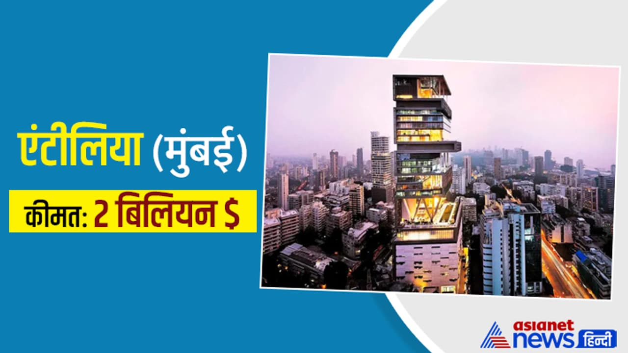 मुकेश अंबानी का निवास एंटीलिया दुनिया का दूसरा सबसे महंगा घर है। सभी मॉर्डन सुविधाओं से लैस 27 मंजिला ये घर 4 लाख स्क्वेयर फीट में फैला हुआ है। इसकी कीमत 2 अरब डॉलर (16, 400 करोड़ रुपए) है।