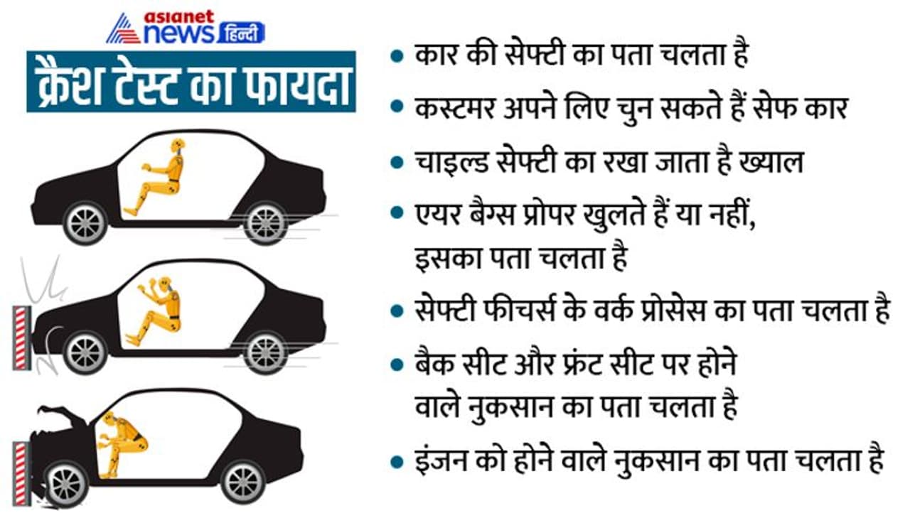 NCAP यानी ग्लोबल न्यू कार असेसमेंट प्रोग्राम द्वारा लगभग सभी कंपनियों की कारों का क्रैश टेस्ट किया जाता है। सभी कंपनियां अपनी कार के हर मॉडल और वैरिएंट पर अलग-अलग सेफ्टी फीचर्स देती है। इनमें से एयरबैग्स, ABS, EBD, कैमरा, स्पीड अलर्ट, सेफ्टी बेल्ट, बैक सेंसर जैसे फीचर्स शामिल रहते हैं। जब कार का क्रैश टेस्ट होता है, तब यही सेफ्टी फीचर्स होते हैं जो तय करते हैं कि कार जब क्रैश हुआ तो अंदर बैठे लोगों का कितना नुकसान हुआ।