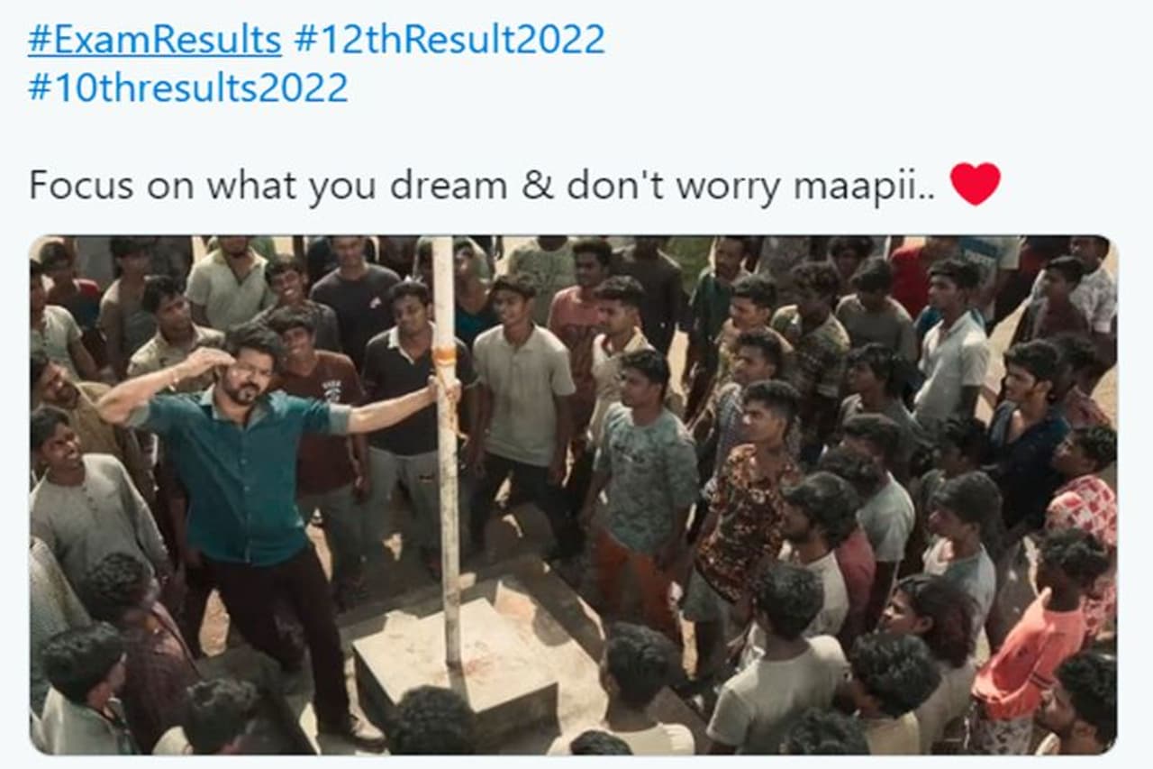 साउथ इंडियन एक्टर जोसफ विजय की मूवी का स्क्रीन शॉट शेयर कर एक यूजर ने लिखा है कि आप जो सपने देखते हैं, उस पर ध्यान केंद्रित करें और चिंता न करें maapi..इस मीम्स पर लोग कमेंट्स कर खूब मजे ले रहे हैं।