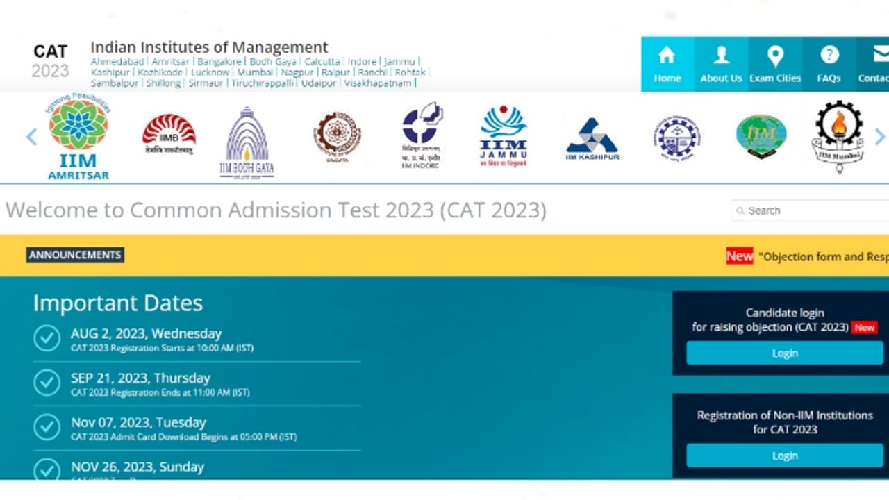ऑफिशियल वेबसाइट पर लिखा है, "कैट 2023 में उपस्थित होने वाले उम्मीदवारों के लिए ऑब्जेक्शन फॉर्म और रिस्पांस शीट 05 दिसंबर 2023 (11:00 पूर्वाह्न) से 08 दिसंबर 2023 (05:00 अपराह्न) तक लाइव है।"