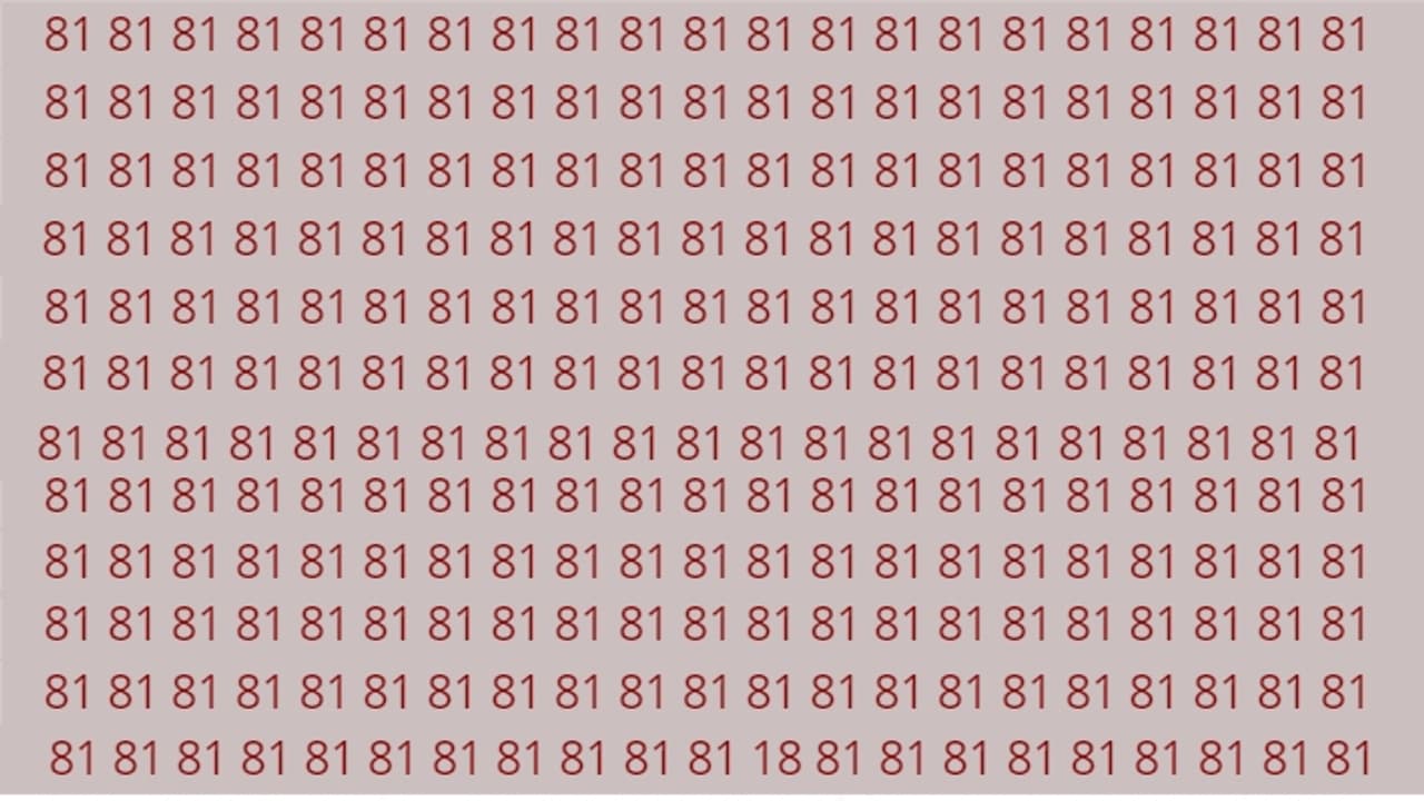 अब आपकी आंखें "81" के पैटर्न को पहचानने लगी होंगी। लेकिन आपको याद रहे की 81 के बीच कहीं छूपे "18" को ढूंढना है। चलिए एक और टिप्स देते हैं एक-एक लाइन को स्कैन करें और अपने दिमाग को भ्रमित न होने दें। 81 और 18 एक जैसे दिख सकते हैं, इसलिए ध्यान से देखें!