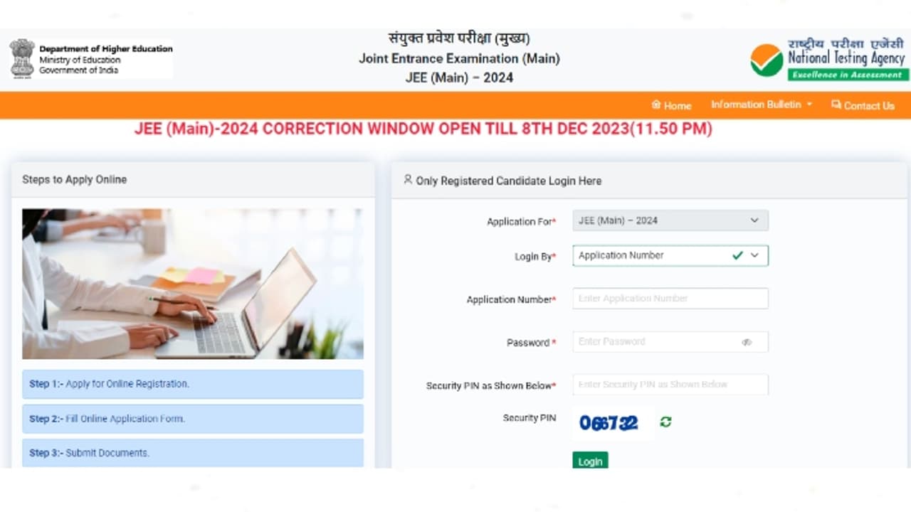 - होम पेज पर उपलब्ध जेईई मेन 2024 करेक्शन विंडो पर क्लिक करें।