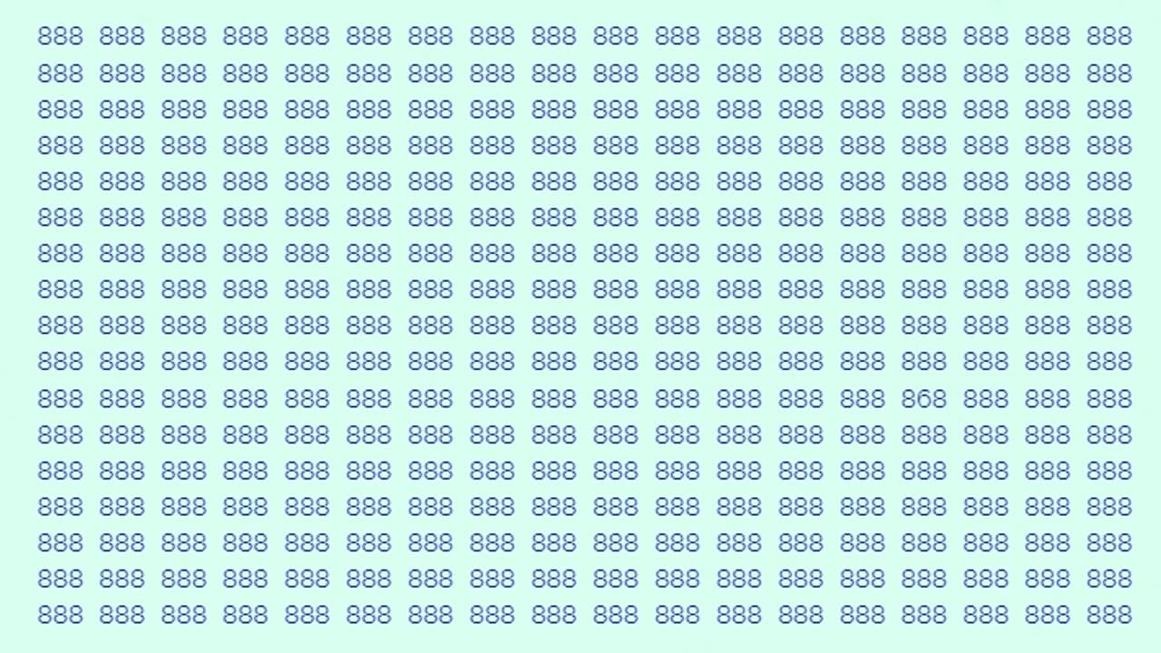 अब अपने टाइमर को 5 सेकंड पर सेट करें और तेजी से 888 की भीड़ में 868 को ढूंढने की कोशिश करें। अपने ध्यान और तेज नजर का इस्तेमाल करते हुए स्पीड में नंबर 868 को ढूंढने की कोशिश करें।