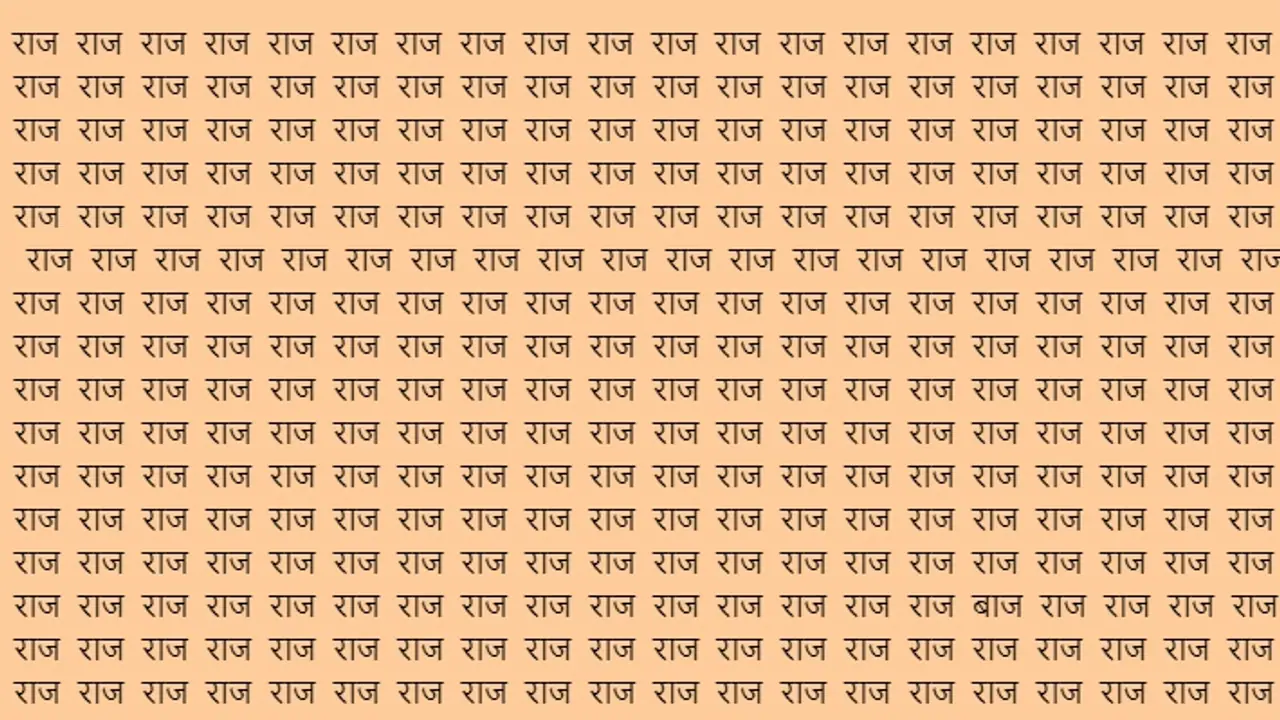 बहुत आसान है! नीचे एक ग्रिड है, जिसमें कई बार "राज" लिखा है। मगर, इन्हीं शब्दों के बीच कहीं छिपा हुआ है "बाज" शब्द। आपको इसे 5 सेकंड के अंदर ढूंढना है। क्या आप इस चैलेंज को पूरा कर सकते हैं? घड़ी की सुइयां चलने लगी हैं... शुरू करें!