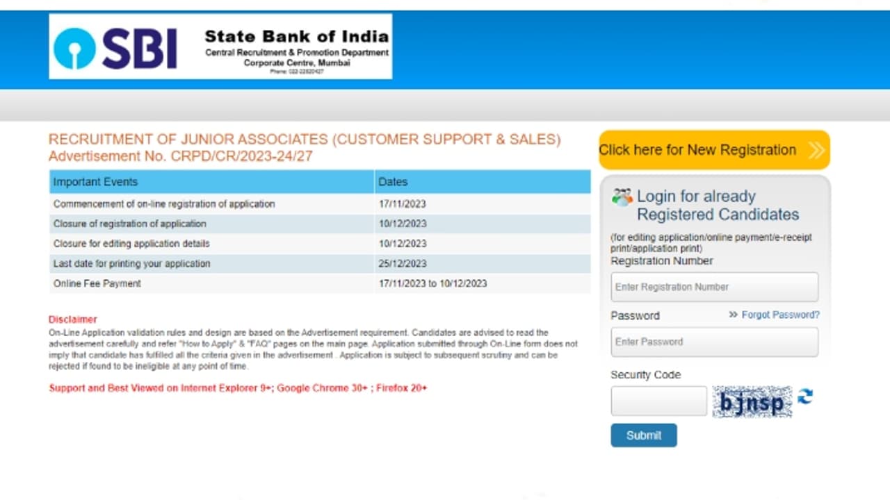 - एक नया पेज खुलेगा जहां एसबीआई क्लर्क भर्ती 2023 लिंक उपलब्ध है।