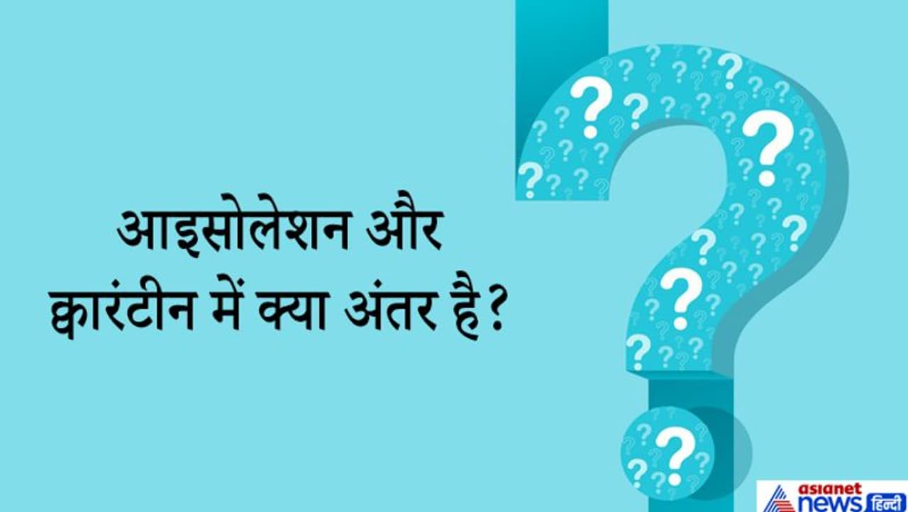 जवाब. कोरोनावायरस के बाद ये दो लगातार चर्चा में है। किसी व्यक्ति को quarantine करने का मतलब जिन्हें संक्रामक रोग से बचाना है तो उन्हें अलग-थलग कर दिया जाए। यानि वो बीमारी की चपेट में न आने पाएं। आसोलेशन यानि तो संक्रमका व्यक्ति है उसे दूसरे लोगों से अलग एक कमरे में रखकर उसका इलाज शुरू किया जाए। आसोलेशन उन्हें किया जाता है जो संक्रमित हैं या जो संक्रमित बीमारी के संदिग्ध हैं।