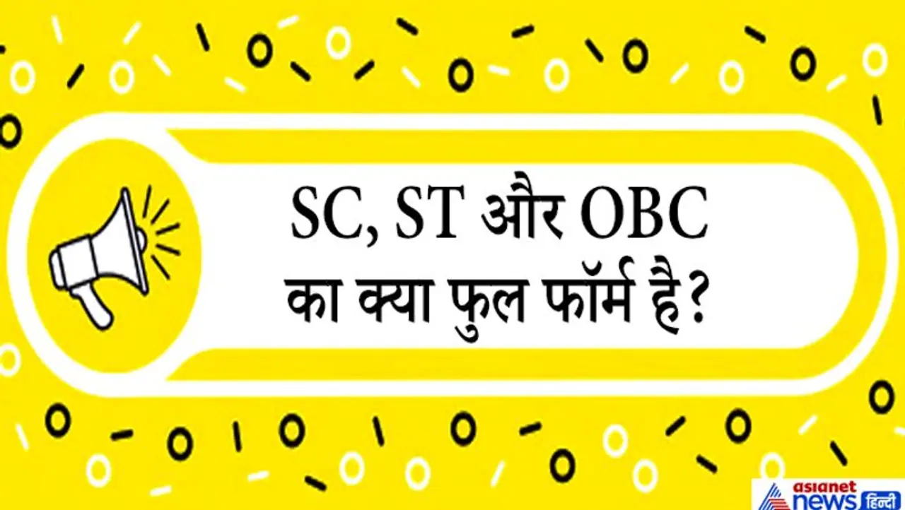 जवाब. SC, ST और OBC का फुल फॉर्म क्रमशः Scheduled Castes (SC), Scheduled Tribes (ST) और Other Background Classes (OBC) होता है। हिन्दी में इन्हें क्रमशः अनुसूचित जाति (SC), अनुसूचित जनजाति (ST) और अन्य पिछड़ा वर्ग (OBC) कहा जाता है।