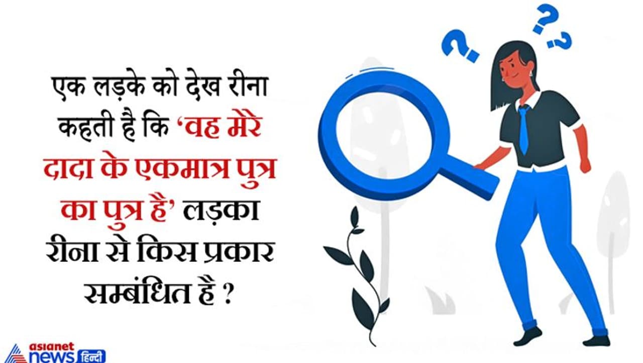 जवाब. दादा का एकमात्र पुत्र = पिता , पिता का पुत्र = भाई, अत: लड़का रीना का भाई है।