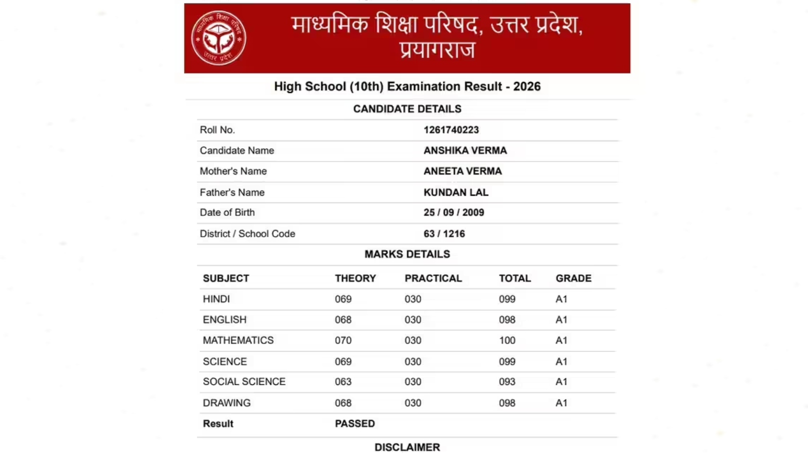 UP Board 10th Result 2026 Link