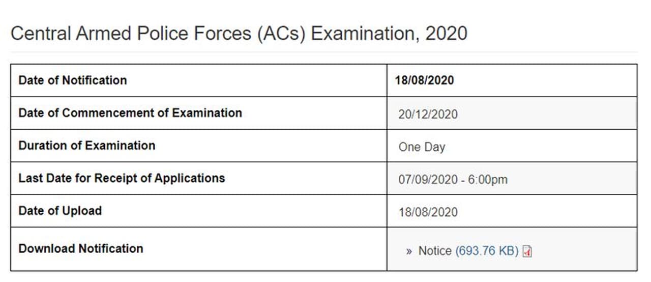 करियर डेस्क. UPSC CAPF Recruitment 2020: यूनियन पब्लिक सर्विस कमिशन ने सेंट्रल आर्म्ड पुलिस फोर्स 2020 रिक्रूटमेंट के अंतर्गत 209 पदों पर योग्य उम्मीदवारों से आवेदन आमंत्रित किए हैं। इस बाबत विज्ञापन यूपीएससी की आधिकारिक वेबसाइट पर उपलब्ध है जहां से इस बारे में विस्तार में जानकारी पायी जा सकती है।