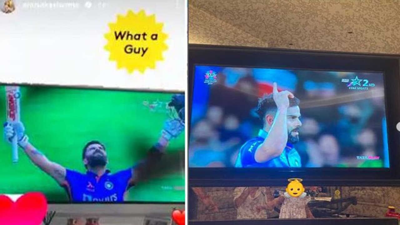 इससे पहले बॉलीवुड एक्ट्रेस अनुष्का शर्मा ने पति विराट कोहली को चीयर करने के लिए इंस्टाग्राम पर शानदार पोस्ट शेयर की है। क्रिकेटर की जमकर तारीफ करते हुए उन्होंने लिखा 'व्हाट ए मैन', इसके साथ उन्होंने अपनी टीवी स्क्रीन की एक तस्वीर भी शेयर की है।