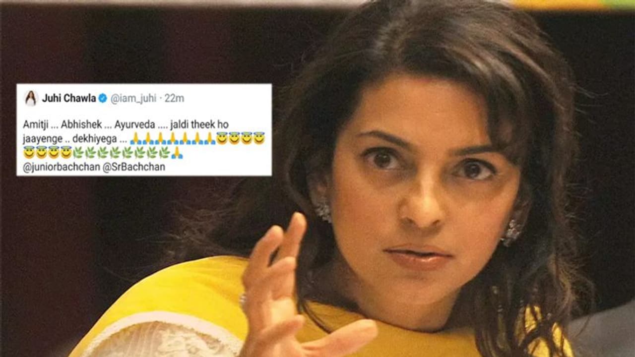 कई सेलेब्स ने बच्चन परिवार के लिए ट्वीट किया और जल्दी ठीक होने की कामना की है। इसी बीच जूही चावला ने भी एक ट्वीट किया, जो सबसे ज्यादा चर्चा में है। एक्ट्रेस ने ट्वीट करते हुए एक ऐसे शब्द का इस्तेमाल किया है, जिससे लोग असमंजस में रहे आखिर उन्होंने यह गलती से लिखा है या वो ये ही लिखना चाहती थीं। दरअसल, जूही ने ट्वीट में लिखा था- अमित जी... अभिषेक...आर्युवेद...जल्दी ठीक हो जाएंगे... देखिएगा।' इसके बाद कई लोग मान रहे हैं कि जूही ने ऐश्वर्या और आराध्या के जगह आयुर्वेद लिख दिया हैं। वहीं, कई लोगों का मानना है कि जूही ने आयुर्वेद को बढ़ावा देने या आयुर्वेद से इलाज करवाने को लेकर अपनी बात कही है।