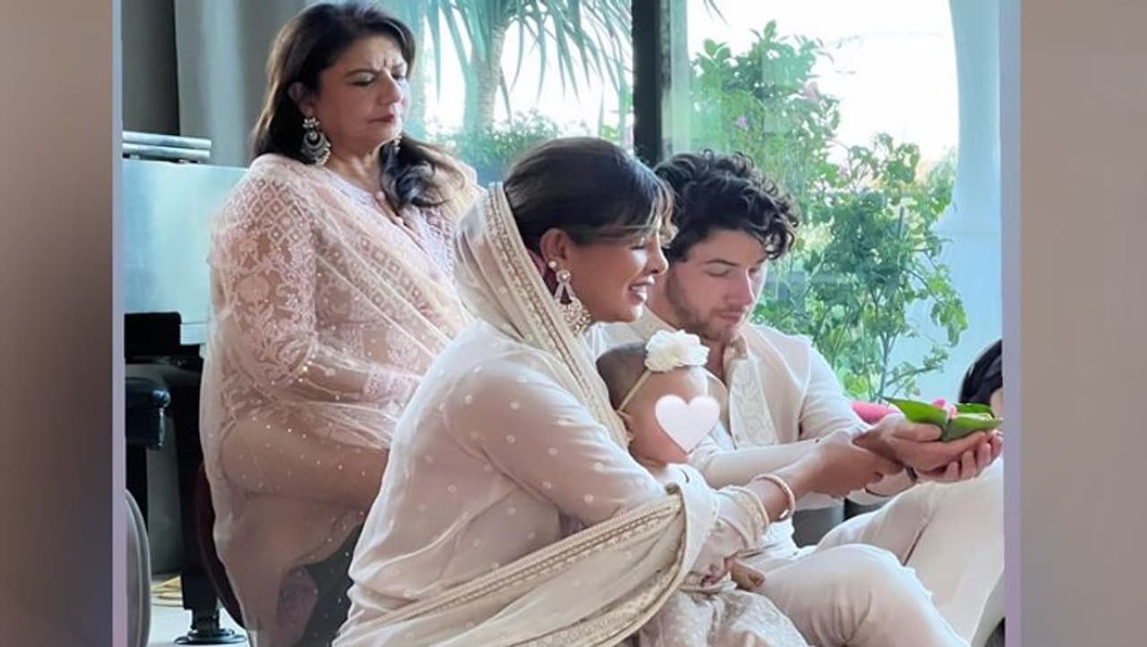 प्रियंका चोपड़ा शादी के बाद से ही लॉस एंजेलिस में ससुरालवालों के साथ रह रही हैं। उन्होंने दिवाली भी अपने घर पर ही मनाई। उन्होंने कुछ फोटोज भी अपने इंस्टाग्राम पर शेयर की है। इन फोटोज में वे पति निक जोनास और बेटी मालती मैरी के साथ दिवाली पर पूजा और जश्न मनाती नजर आ रही है। सामने आई फोटोज में देखा जा सकता है कि प्रियंका ने सफेद रंग का चमकदार लहंगा है तो निक भी पत्नी की ड्रेस के मैचिंग कलर का पजामा कुर्ता पहने नजर आ रहे है। वहीं, कपल की बेटी मालती भी लहंगा में बेहद क्यूट दिख रही है। हालांकि, हर बार की तरह इस बार भी प्रियंका ने अपनी बेटी का चेहरा छुपा लिया।