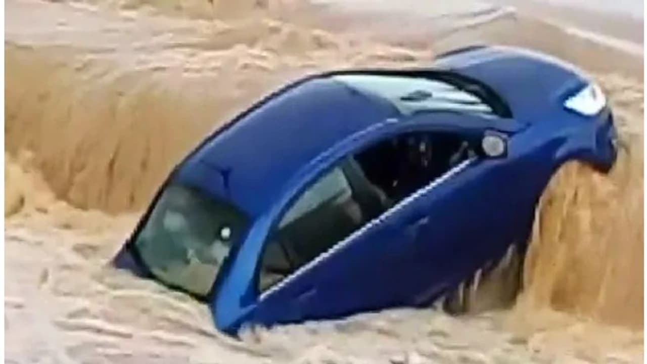 इस घटना का वीडियो सोशल मीडिया पर सामने आया है। पानी की धार इतनी तेज थी कि कार किसी पत्ते की तरह बहते चली गई। हालांकि वहां मौजूद लोगों ने कार से पिता और उसके 8 साल के बेटे को सुरक्षित निकाल लिया।