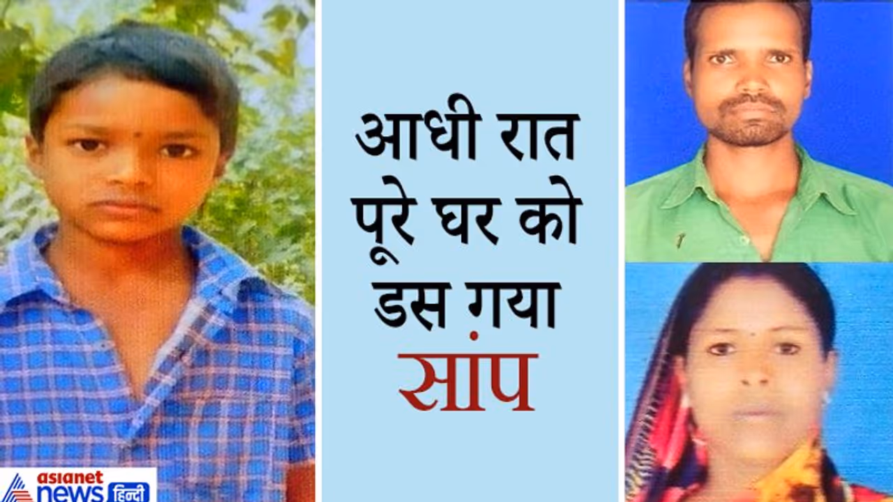 जानकारी के मुताबिक, मुनमुना गांव में रहने वाले समय लाल (40), उसकी पत्नी गंगा बाई (35) और बेटे संदीप (10) को शनिवार रात करीब 12 बजे सांप ने डस लिया था। तीनों जमीन पर सो रहे थे। सांप के डसने पर गंगाबाई की नींद खुली। उसने सांप को जाते देखा, तो घबरा गई। उसने पति को उठाया। पति को जब सांप के डसने की जानकारी लगी, तो वो घबरा गया। दम्पती ने देखा कि उनका बेटा बेहोश था। यह देखकर वे चीखने लगे। उनकी आवाजें सुनकर पड़ोसी वहां पहुंचे। इसके बाद रात 3 बजे लोगों की गाड़ी की व्यवस्था की है। इसके बाद तीनों को पंडरिया अस्पताल लेकर जाया गया। हालांकि तीनों की हालत नाजुक देखकर उन्हें जिला अस्पताल रेफर कर दिया गया। रविवार सुबह करीब 5 बजे तीनों को कवर्धा जिला अस्पताल पहुंचा गया। वहीं एक-एक करके तीनों ने दम तोड़ दिया। सबसे पहले बेटे की मौत हुई। इसके बाद सुबह करीब 7.08 बजे समयलाल ने दम तोड़ दिया। इसके एक मिनट बाद गंगाबाई की मौत हो गई।