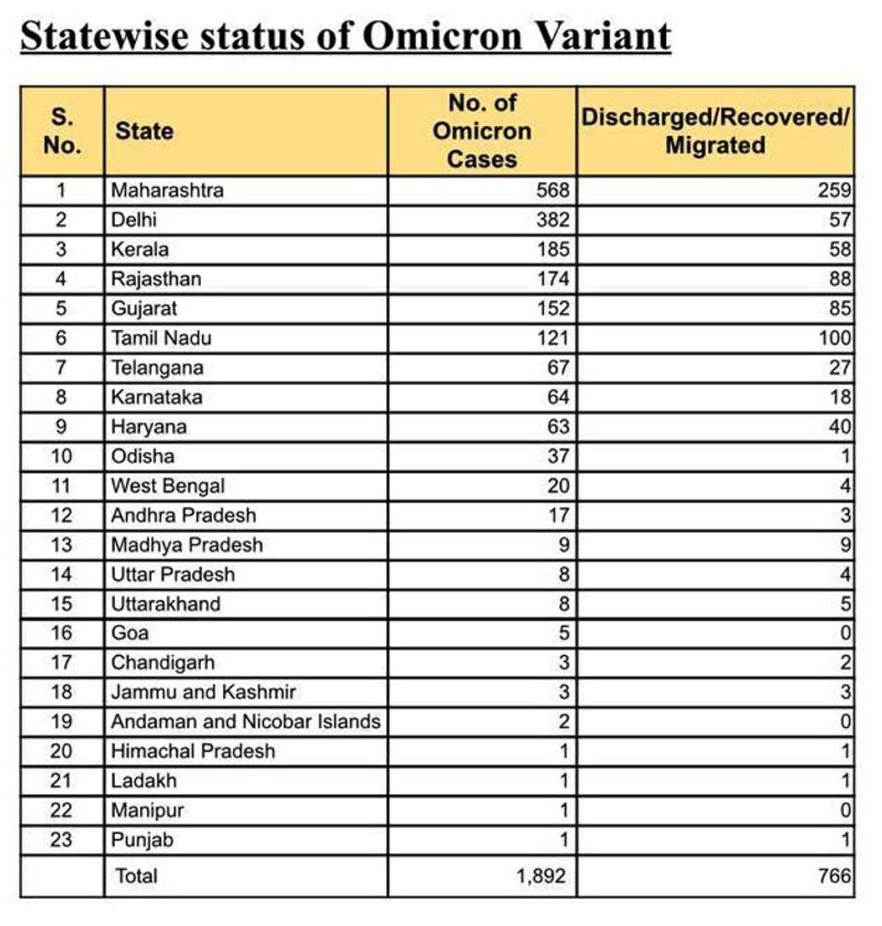 देश के 23 राज्यों में कोरोना के नए वैरिएंट ओमिक्रोन (new variant Omicron) के 1,892 केस सामने आ चुके हैं। हालांकि यह अच्छी बात है कि इसमें से 766 रिकवर हो चुके हैं। इस बीच देश में वैक्सीनेशन का आंकड़ा 146.70 करोड़ के पार हो गया है।