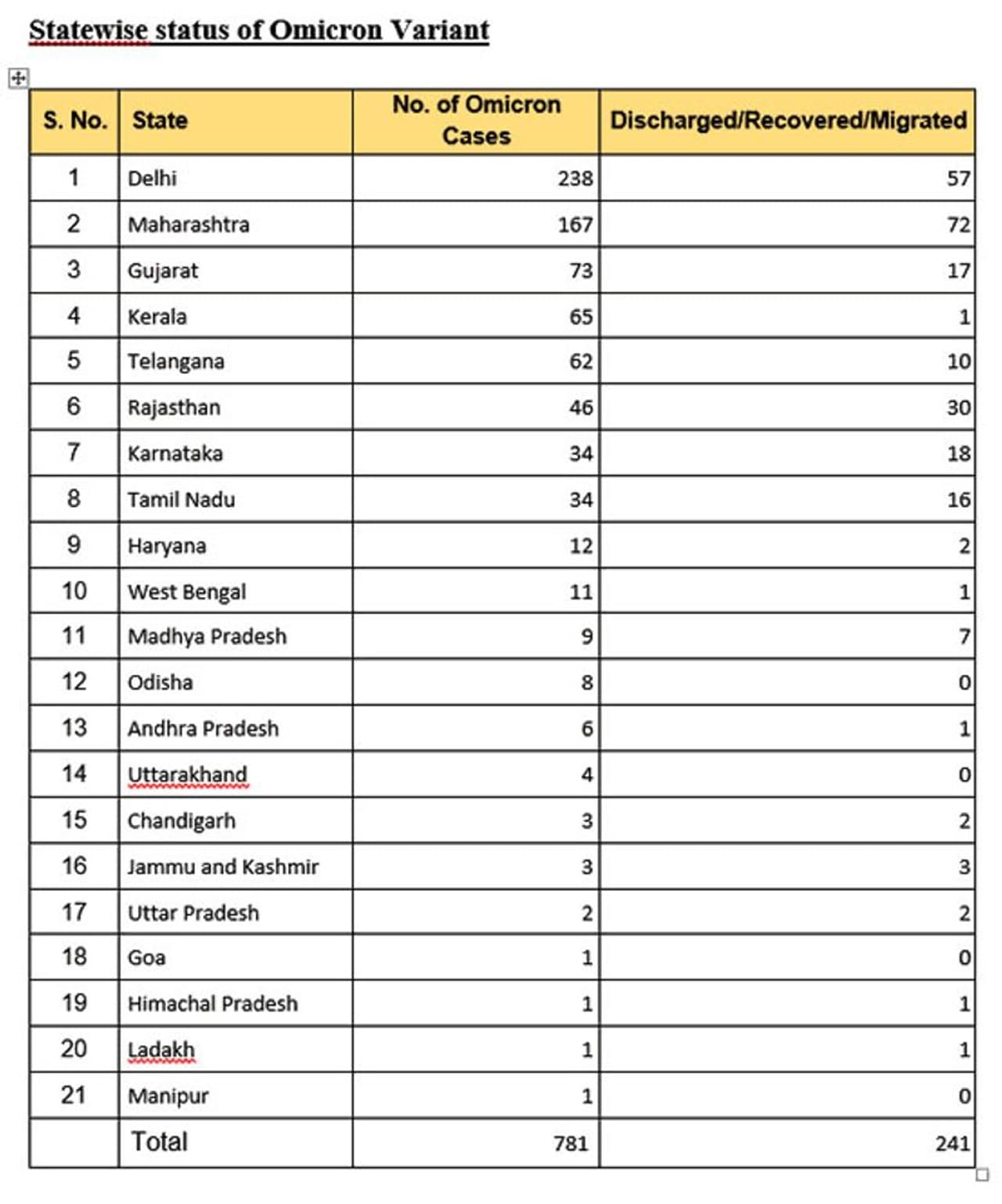 कोरोना के नए वैरिएंट ओमिक्रोन (new variant Omicron) के देश के 21 राज्यों में 781 केस हो चुके हैं। इनमें दिल्ली में सबसे अधिक 238 मामले सामने आ चुके हैं। इस बीच राष्ट्रव्यापी टीकाकरण अभियान के तहत अब तक 143.15 करोड़ टीके की खुराक दी जा चुकी हैं।