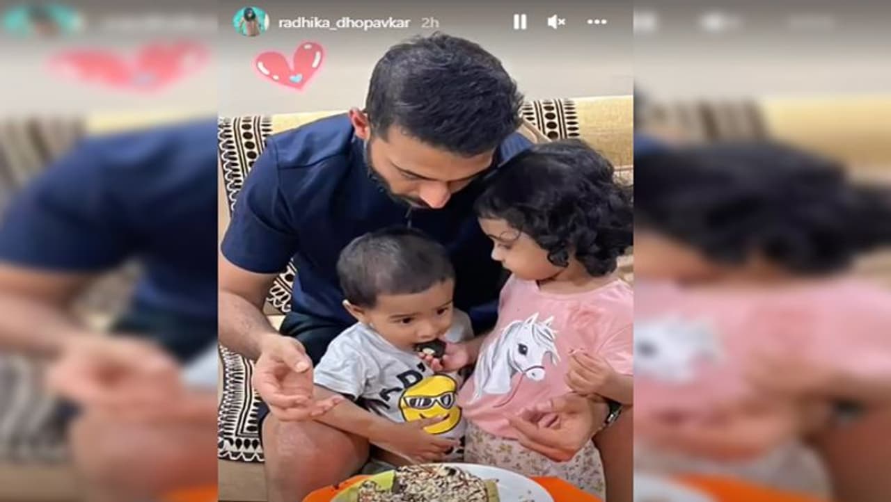 इसके साथ ही राधिका ने अपनी इंस्टा स्टोरी पर रहाणे के बर्थडे कटिंग की फोटो भी शेयर की। जिसमें अजिंक्य रहाणे अपनी बेटी आर्या और एक और बच्चे के साथ नजर आ रहे हैं और उनकी बेटी आर्या बच्चे को केक खिलाती नजर आ रही है। बता दें कि अजिंक्य रहाणे आईपीएल 2022 के बाद से अपने परिवार के साथ समय बिता रहे है।