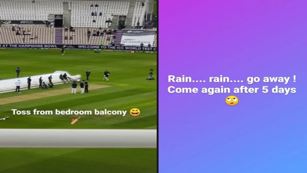 इससे पहले अनुष्का ने अपने कमरे की बालकनी से मैच के टॉस की तस्वीर भी शेयर की थी। वहीं, जब शुक्रवार को बारिश के कारण मैच नहीं हो पाया था, तो उन्होंने स्टोरी शेयर कर लिखा था कि Rain... Rain... Go away! Come again after 5 Days' (बारिश चली जाओ और पांच दिन बाद आना)। बता दें कि WTC का फाइनल में 18- 22 जून तक चलेगा। लेकिन 18 जून को बारिश होने के चलते फाइनल मैच को 23 तरीख तक बढ़ा दिया गया है।
