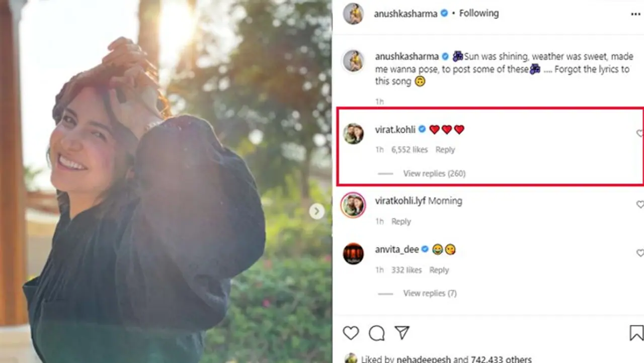बॉलीवुड एक्ट्रेस अनुष्का शर्मा ने शुक्रवार की सुबह फैंस के साथ अपनी खूबसूरत सन-किस्ड तस्वीरें शेयर कीं। उनकी ये तस्वीर देख विराट कोहली ने इसपर प्यारा सा रिएक्शन दिया।