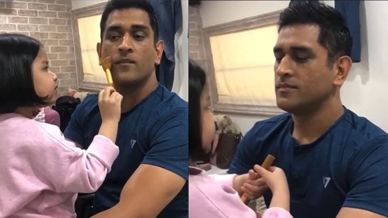 कोरोना वायरस के चलते सभी तरह के खेल से जुड़े इवेंट कैंसिल हो चुके हैं और देश को लॉकडाउन कर दिया गया है। इस वजह से फैंस लंबे समय से अपने पसंदीदा स्टार्स को नहीं देख पा रहे हैं। हालांकि धोनी की मेकअप आर्टिस्ट सपना भावनानी ने एक पुराना वीडियो शेयर किया है, जिसमें धोनी की बेटी जीवा उनका मेकअप करती नजर आ रही हैं।
