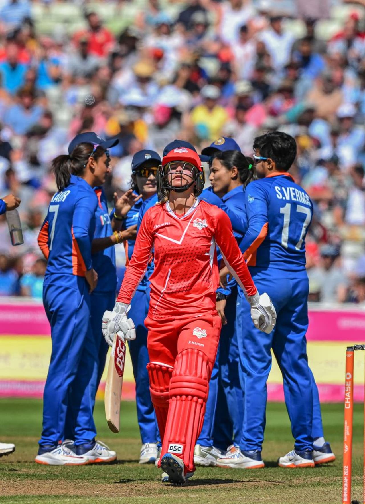 इंग्लिश टीम बैटिंग करने उतरी तो 20 के स्कोर पर ही पहला विकेट गंवा दिया। झूलन गोस्वामी की ड्रीम बॉल पर ब्यूमांट एलबीडब्ल्यू आउट होकर पवैलियन लौट गईं। तेज गेंदबाज मेघना सिंह ने जल्द ही दूसरा विकेट चटका दिया और सलामी बल्लेाबज एमा लैंब को विकेट कीपर यास्तिका के हाथों कैच करा दिया। लैंब ने कुल 12 रन ही बनाए। इंग्लैड का स्कोर 34 वें ओवर में 6 विकेट पर 128 रन ही था। लेकिन फिर टेलएंडर बल्लेबाजों ने टीम के लिए जल्दी-जल्दी 100 रन बटोर लिए। लास्ट के तीनों बल्लेबाजों क्रमशः डैनी वाट ने 43, एलिस रिचर्ड्स ने 50 और सोफी ने 31 रनों की पारियां खेलकर इंग्लैंड के लिए चुनौतीपूर्ण स्कोर खड़ा किया। हालांकि भारतीय टीम ने यह मुकाबला जीत लिया।