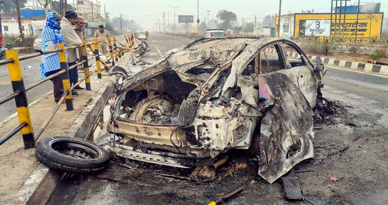 एक्सिडेंट के बाद कार में लगी आग
