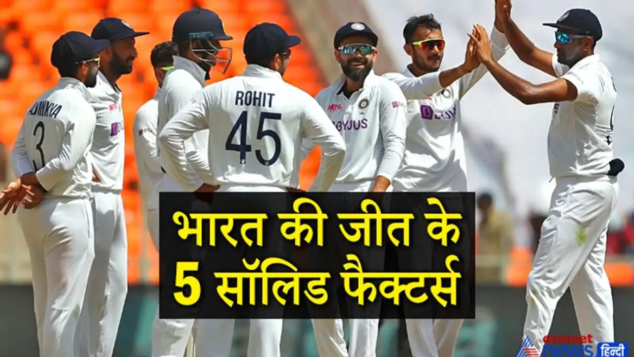 स्पोर्ट्स डेस्क. भारत और इंग्लैंड के बीच 4 मैचों की टेस्ट सीरीज (IND vs ENG, 4th Test) के आखिरी मैच में भारत ने शानदार जीत दर्ज की। इसके साथ ही भारतीय टीम ने ये सीरीज 3-1 से अपने नाम कर ली। अहमदाबाद के नरेंद्र मोदी स्टेडियम में खेले गए चौथे टेस्ट मैच के तीसरे दिन ही भारत ने ये कारनामा करके दिखाया और एक बार फिर अपनी जमीन पर अंग्रेजों को धूल चटाई। भारत की जीत के लिए बल्लेबाजों समेत गेंदबाजों ने भी कमाल करके दिखाया। आइए आपको बताते हैं भारत की जीत के 5 बड़े फैक्टर्स..