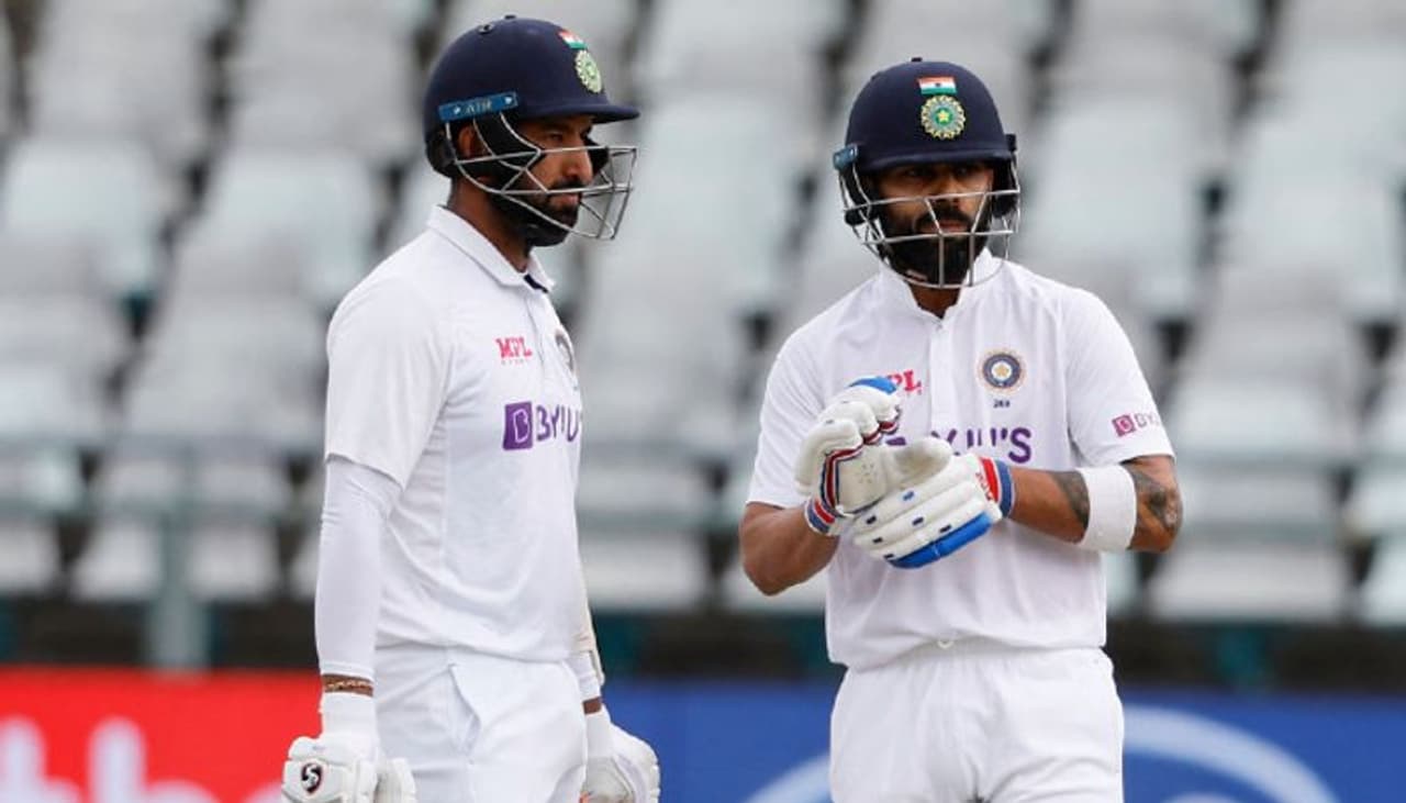 अनुभवी बल्लेबाज चेतेश्वर पुजारा पहली पारी में अर्धशतक जमाने से चूक गए। पहले पारी में वे शानदार लय में नजर आ रहे थे। इस पारी के दौरान उन्होंने 55.84 की स्ट्राइक रेट से बल्लेबाजी करते हुए 77 गेंदों का सामना किया। इस पारी में उन्होंने 7 चौके जमाए। मार्को जेन्सन की सीधी गेंद पर विकेटकीपर वेरेने को कैच दे बैठे। पुजारा ने कप्तान कोहली के साथ अर्धशतकीय साझेदारी की।
