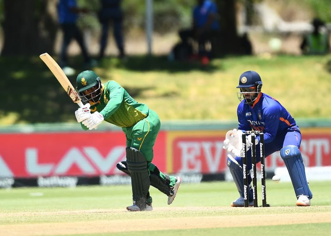 साउथ अफ्रीकी कप्तान टेंबा बावुमा ने टेस्ट सीरीज की फॉर्म को वनडे सीरीज में भी जारी रखा है। भारत के खिलाफ पहले मैच में उन्होंने वनडे करियर का दूसरा शतक जमाया। उन्होंने 133 गेंदों में अपना शतक पूरा किया। वे 143 गेंदों में 110 रन बनाकर आउट हुए। अपनी पारी के दौरान उन्होंने 8 चौके जमाए।