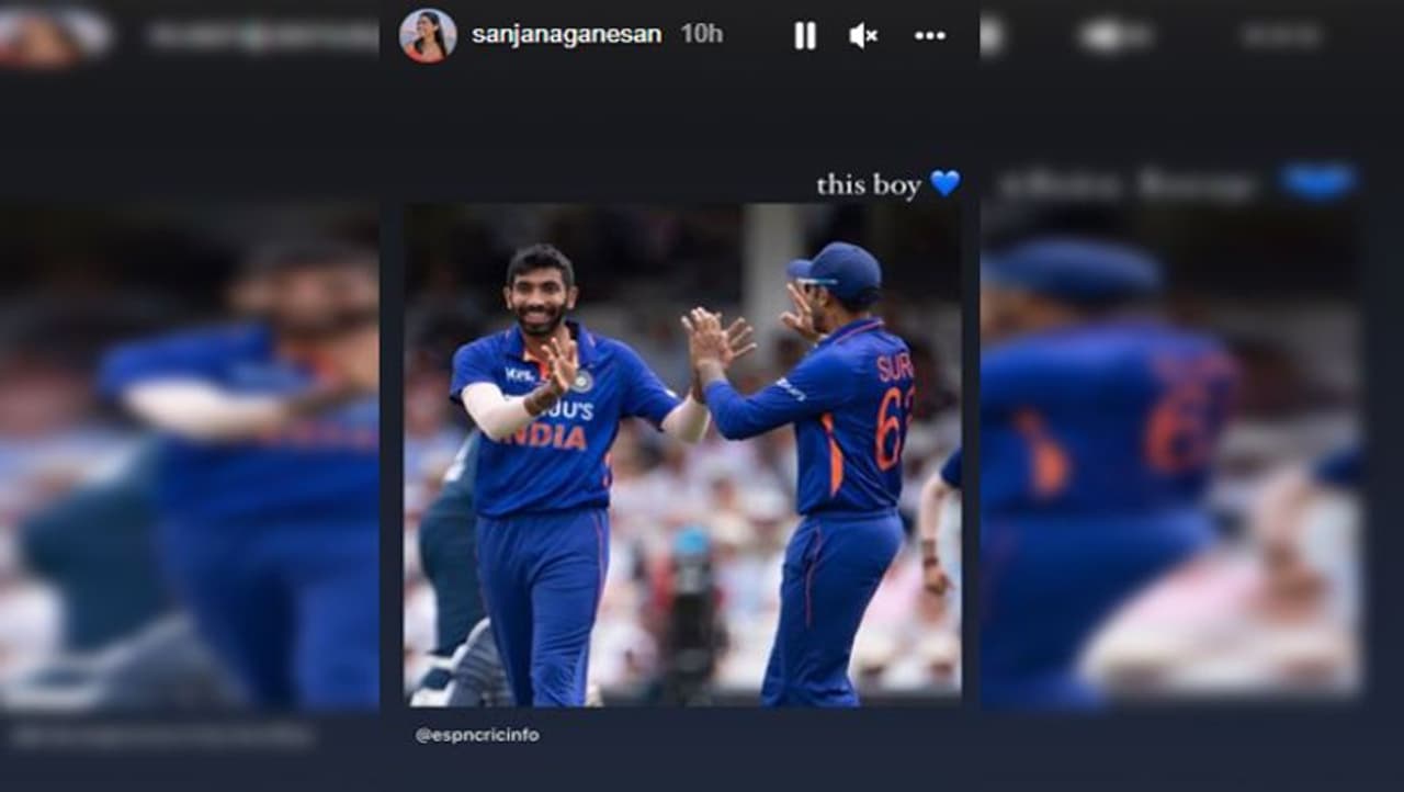भारतीय क्रिकेट टीम के खिलाड़ियों के साथ उनके परिवार वाले भी इस समय लंदन में मौजूद है। ठीक इसी तरह से तेज गेंदबाज जसप्रीत बुमराह की वाइफ भी इन दिनों इंग्लैंड में मौजूद हैं। लेकिन वह यहां छुट्टियां नहीं बल्कि काम करने में व्यस्त हैं। एक तरफ वह क्रिकेट के एंकरिंग कर रही है तो दूसरी ओर जब मंगलवार को हुए मुकाबले (India vs England 1st ODI) में उनके पति और यॉर्कर किंग जसप्रीत बुमराह ने इंग्लैंड के खिलाफ 6 विकेट हासिल किए तो उनकी खुशी का ठिकाना नहीं रहा। इंस्टाग्राम पर उन्होंने जसप्रीत बुमराह की फोटो शेयर कर उन्हें विश किया। इसके साथ उन्होंने यह लड़का लिखकर एक ब्लू कलर की दिल वाली इमोजी भी बनाई।