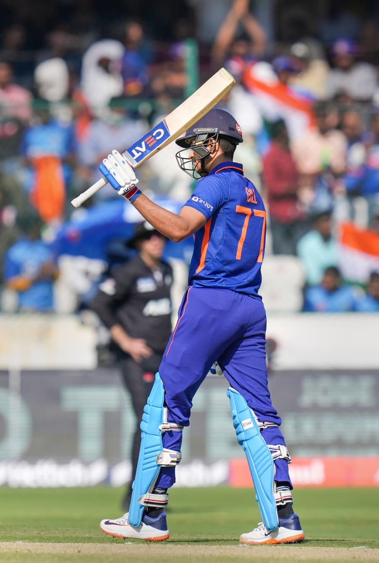 India V/S New Zealand 1st ODI. भारत बनाम न्यूजीलैंड के बीच खेले जा गए पहले वनडे मैच में भारतीय बल्लेबाज शुभमन गिल ने कमाल की पारी खेली और सिर्फ 19वें मैच में ही दोहरा शतक जड़ दिया है। शुभमन की यह पारी कई मायनों में कमाल की रही क्योंकि शुभमन ने भारत के 349 रनों में से 208 रन अकेले ही बनाए हैं। शुभमन गिल ने न्यूजीलैंड के खिलाफ दुनिया की किसी भी टीम की तरफ से सबसे बड़ी पारी खेली है। गिल ने यह कारनाम सिर्फ 23 साल की उम्र में किया जो कि स्पेशल है। शुभमन की पारी के दम पर ही भारत ने न्यूजीलैंड की टीम को 350 रनों का बड़ा टार्गेट दिया है।