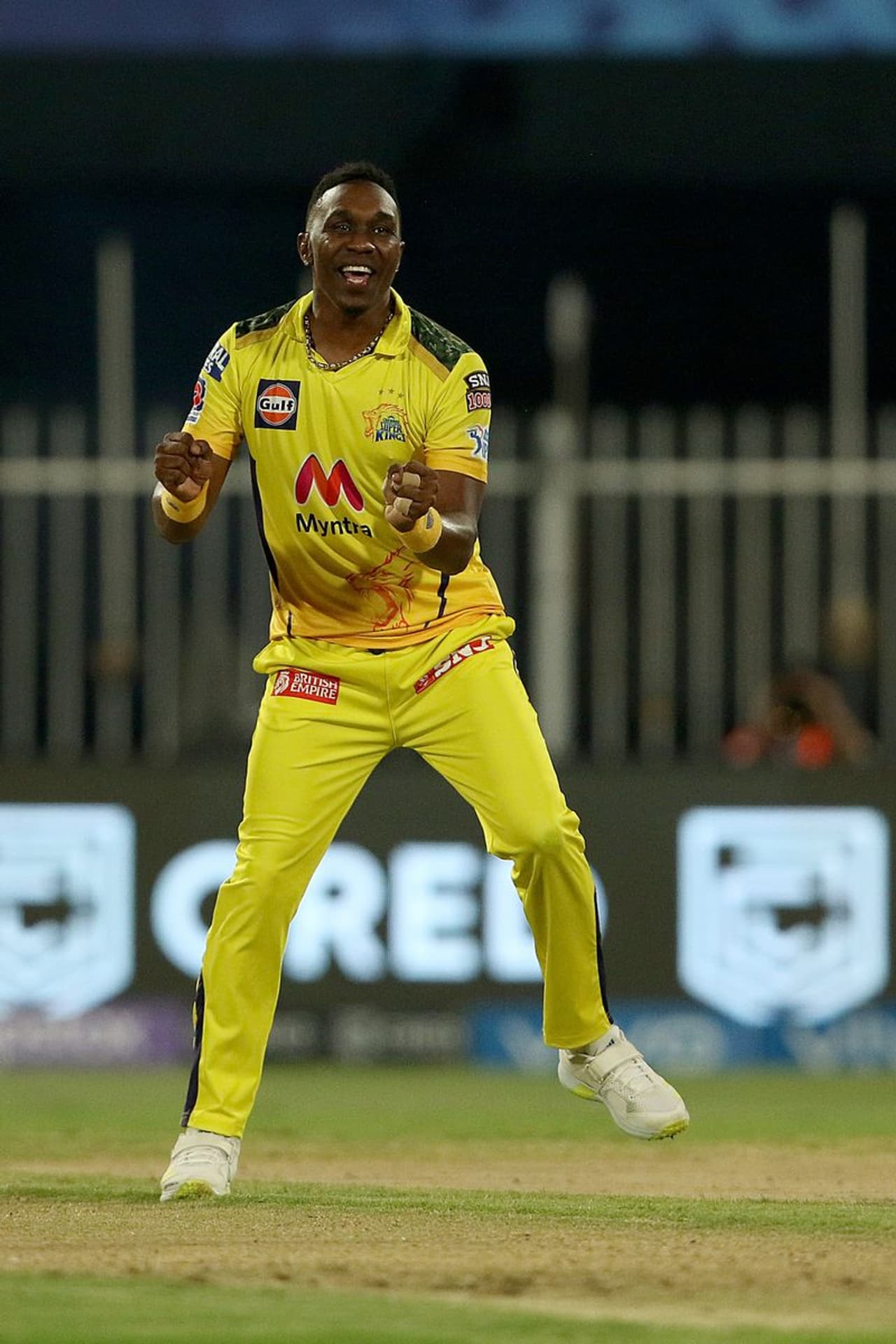 चेन्नई सुपर किंग्स की ओर से अनुभवी गेंदबाज ड्वेन ब्रावो ने शानदार गेंदबाजी करते हुए 3 विकेट हासिल किए। हालांकि वे अपनी टीम को जीत दिलाने में कामयाब नहीं हो सके। ब्रावो ने 4 ओवर गेंदबाजी करते हुए मात्र 20 रन खर्च कर 3 बल्लेबाजों (वेंकटेश अय्यर, नितीश राणा और सैम बिलिंग्स) को चलता किया। मिचेल सेंटनर के खाते में 1 विकेट आया।