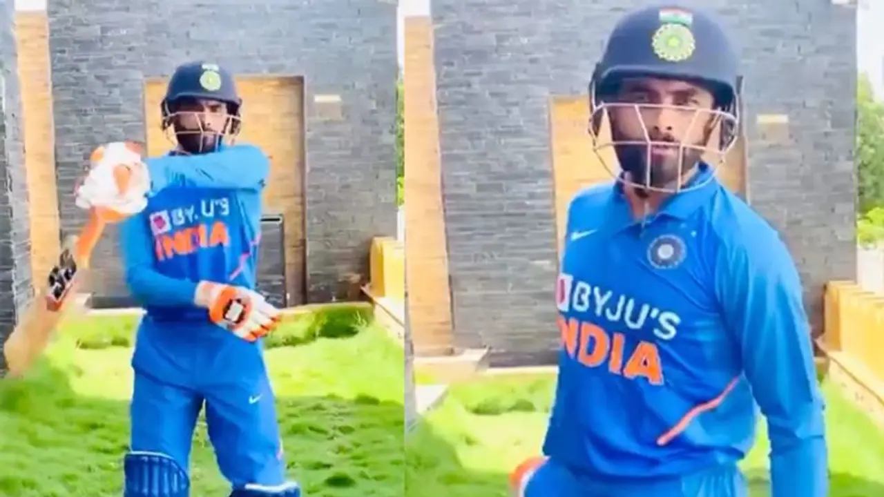 दरअसल, लॉकडाउन के कारण क्रिकेट के सभी टूर्नामेंट इस समय रद्द कर दिए गए हैं। और खिलाड़ियों को भी मैदान पर जाने की मनाही है। ऐसे में सर जडेजा ने अपने घर में ही टीम इंडिया की फुल ODI जर्सी पनकर बैटिंग करने के मूड में दिख रहे हैं। उन्होंने इस दौरान हेल्मेट, बैटिंग ग्लब्स और पैड भी लगाए हुए हैं। वीडियो में उन्हें साफ तौर पर देखा जा सकता है कि कैसे एक गेंद को ड्राइव करने के बाद अपने सेलिब्रेशन स्टाइल में तलवार की तरह बल्ला को घुमा रहे हैं।