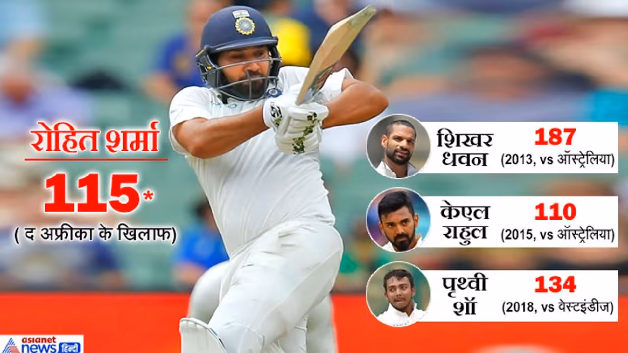 विशाखापत्तनम. दक्षिण अफ्रीका के खिलाफ बुधवार से शुरू हुए पहले टेस्ट मैच के पहले दिन भारत ने शानदार खेल दिखाया। स्टंप तक भारत ने बिना विकेट खोए 202 रन बनाए। करियर के 28वें मैच में ओपनर के तौर पर उतरे रोहित शर्मा ने शानदान शतक लगाया। इसी के साथ वे बतौर ओपनर पहले मैच में शतक लगाने वाले चौथे भारतीय बन गए हैं। उनके अलावा शिखर धवन, केएल राहुल और पृथ्वी शॉ ये कारनामा कर चुके हैं।