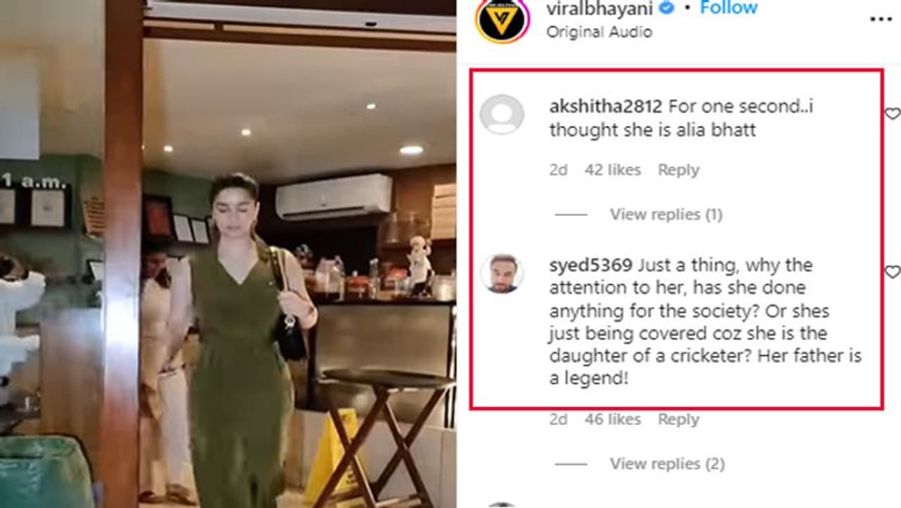 सारा तेंदुलकर की लेटेस्ट फोटोज देख फैंस कंफ्यूज हो गए और सारा को आलिया भट्ट ही समझने लगे। एक यूजर ने लिखा कि '1 सेकेंड के लिए मुझे ये आलिया भट्ट जैसी लगी।' वहीं, एक अन्य यूजर ने उन्हें ट्रोल करते हुए लिखा कि 'ओह हो एटीट्यूड तो देखों मैडम का, एक बार रुक जाती तो क्या होता।'