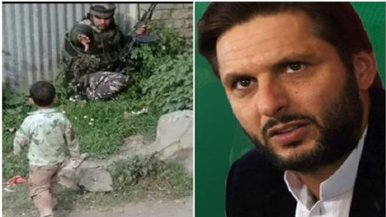 कश्मीर के सोपोर में बुधवार को आतंकी हमला हुआ और इसमें 65 साल के नागरिक बशीर अहमद को भी आतंकियों की गोली लग गई। बशीर के साथ उनका 3 साल का नाती भी था और वह शव के पास बैठकर रो रहा था। सीआरपीएफ के जवान उस बच्चे को क्रॉस फायरिंग वाली जगह से बचाकर उसकी मां के पास लेकर गए। शाहिद अफरीदी ने इसी घटना की एक फोटो सोशल मीडिया पर शेयर की। जिससे वो मासूम बच्चा अपने नाना के शव और सैनिक के बीच खड़ा है। अफरीदी ने इस फोटो पर भी अपना जहर उगला और लिखा कि कोई भी फोटो कश्मीरियों के हालत को बयां नहीं कर सकती। यही नहीं उन्होंने इस दर्दनाक फोटो और कश्मीर के खिलाफ जहर उगल रहे अपने बयान को अपने ट्वीटर अकाउंट पर पिन भी किया है।