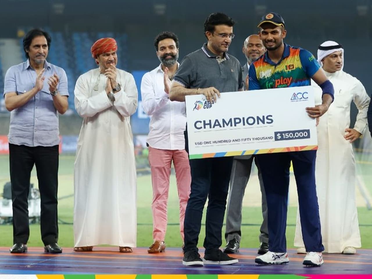 श्रीलंका के कप्तान दासुन शनाका राजपक्षे के साथ बैठे थे और उन्होंने कहा कि पहला मैच अफगानिस्तान से हारने के बाद टीम ने शानदार प्रतिक्रिया दी है। कैप्टन ने टीम के सभी खिलाड़ियों की जमकर तारीफ की। शानुका ने कहा कि उस पहली हार के बाद हमने सीरियस चर्चा की। हम जानते थे कि हमारे पास प्रतिभा है, काबिलियत है और सभी खिलाड़ी इसके लिए तैयार भी हो गए। सभी ने टीम की तरह से प्रदर्शन किया और उसी का परिणाम है कि हम जीत पाए हैं। हमारे कोचिंग स्टाफ ने बेहतर काम किया और हमने हम प्लानिंग को एग्जीक्यूट किया। श्रीलंकाई कप्तान के पास खिताब जीतने के बाद प्रशंसकों के लिए घर वापसी का संदेश भी था।
