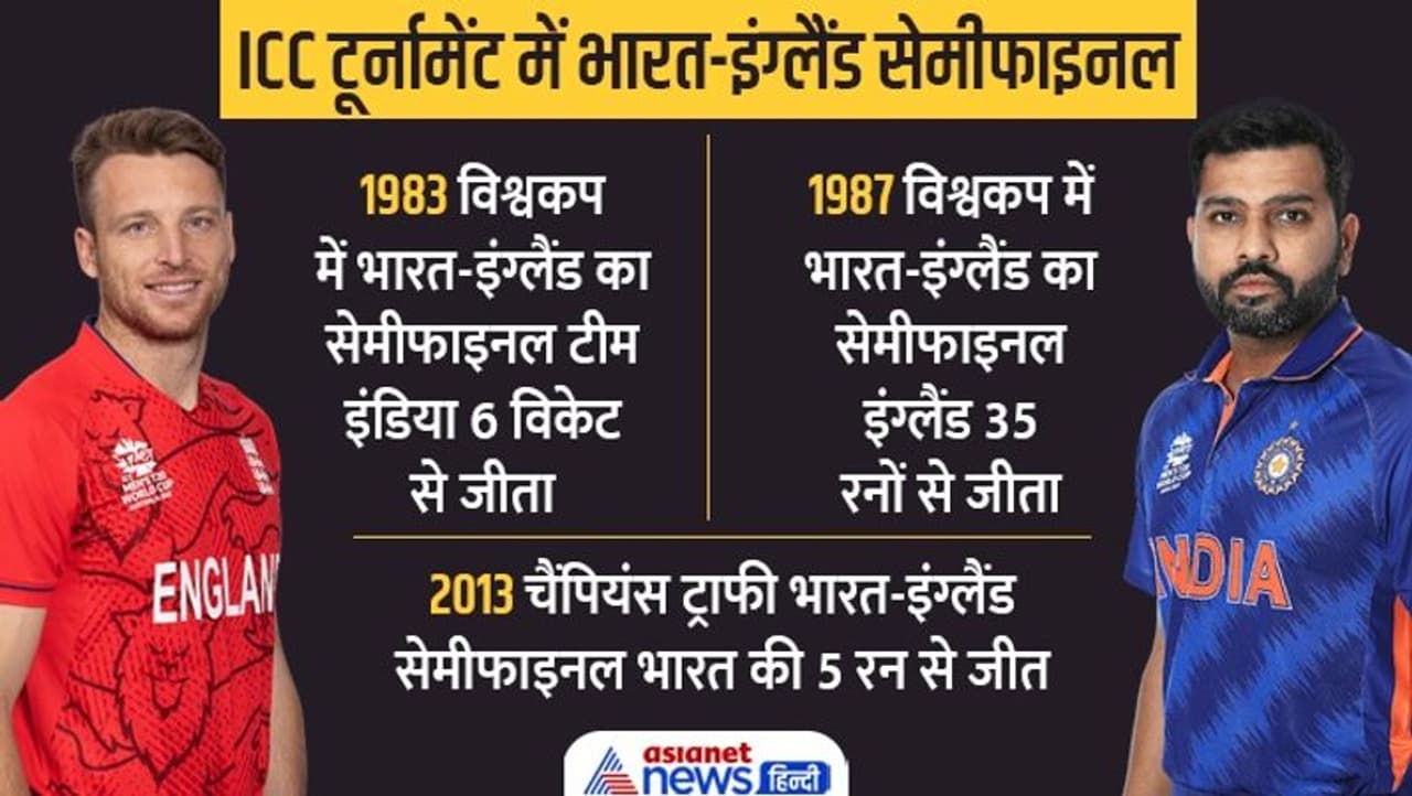 India V/S England Semifinal. टी20 विश्वकप का दूसरा सेमीफाइनल मुकाबला भारत बनाम इंग्लैंड के बीच 10 नवंबर को खेला जाएगा। यह मैच गुरूवार को दोपहर 1.30 बजे खेला जाएगा। इससे पहले दोनों टीमें आईसीसी टूर्नामेंट में तीन बार आमने-सामने आ चुकी हैं जिसमें 2 बार भारत ने जीत दर्ज की है जबकि 1 बार इंग्लैंड की टीम को जीत मिली है। भारत ने 1983 में जो पहला विश्वकप जीता था, उसका सेमीफाइनल भी भारत बनाम इंग्लैंड के बीच हुआ था। तब भारत ने सेमीफाइनल में इंग्लैंड को मात देकर विश्व विजेता बनने तक का सफर तय किया था। तो क्या भारत फिर से 1983 का इतिहास दोहरा पाएगा या फिर इस बार अंग्रेजों की सेना जीत जाएगी? आइए समझते हैं कि इस बार इंग्लैंड की टीम से मुकाबला मुश्किल क्यों है...