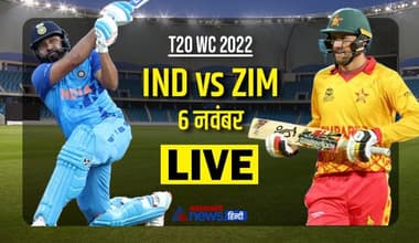 India V/S Zimbabwe Updates. नमस्कार, एशियानेट न्यूज के लाइन ब्लॉग में आपका स्वागत है। टी20 विश्वकप में भारत का अंतिम मुकाबला जिम्बाबवे के साथ खेला गया जिसमें भारतीय टीम ने बड़ी जीत दर्ज की है। टॉस जीतकर कप्तान रोहित शर्मा ने पहले बैटिंग करने का निर्णय लिया। केएल राहुल के 51 रन और सूर्यकुमार यादव के 61 रनों की बदौलत भारतीय टीम ने जिम्बाबवे के सामने 187 रनों का टार्गेट रखा। जवाब में बैटिंग करने उतरी जिम्बाबवे की टीम ने पहली ही गेंद पर विकेट गंवा दिया। इसके बाद भारतीय गेंदबाजों ने शानदार बॉलिंग की और पूरी टीम 17.2 ओवर्स में सिर्फ 115 रनों पर समेट दिया। भारत ने यह मैच 71 रनों के बड़े अंतर से जीत लिया है। भारत बनाम जिम्बाबवे मैच की हर अपडेट्स के लिए जुड़े रहें हमार लाइव ब्लॉग से...